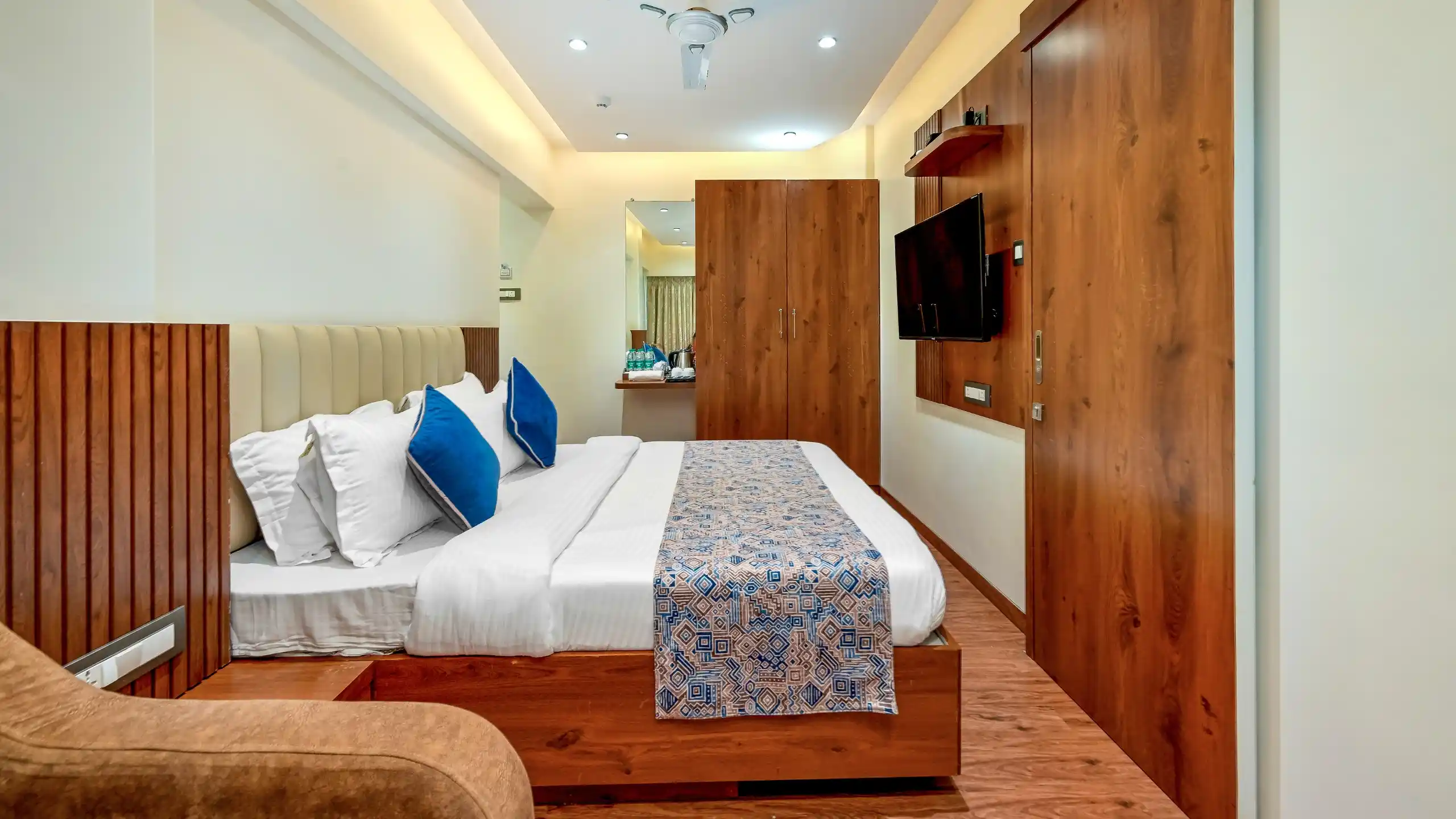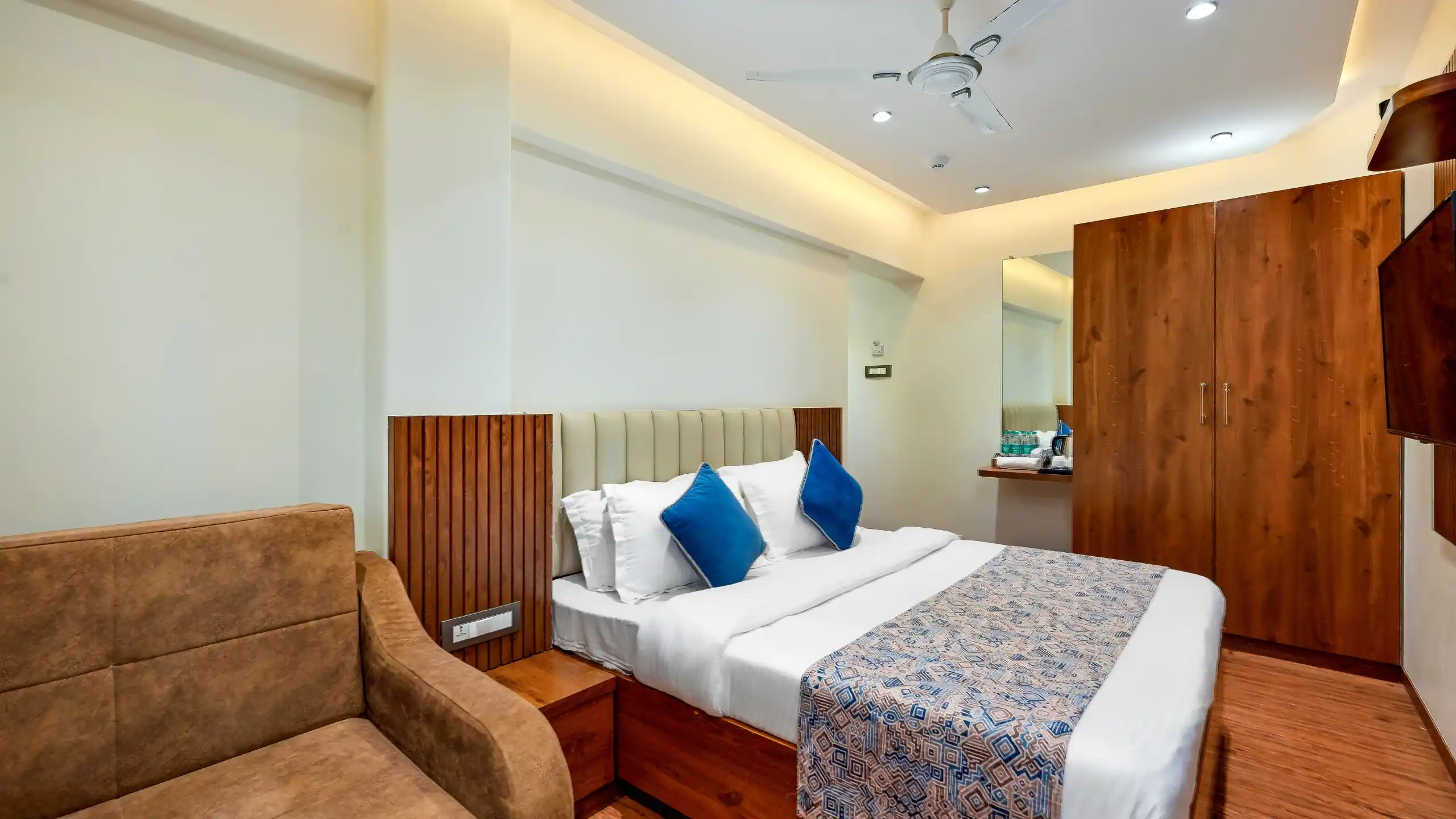 Ideal for small families or friends traveling together, our Standard Triple Bed Room features One Queen Sized bed and one single bed , LED TV, a mini fridge, and clean, hygienic bathrooms. Designed to offer comfort at the best value, this room ensures a restful stay in the city center.